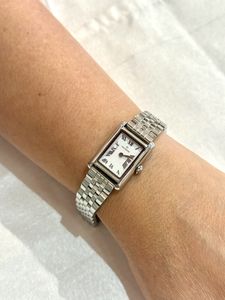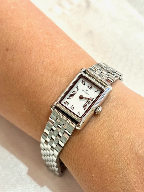 En ny lekker klokke fra Mockberg. Klokkenes firkantede urkasser gir denne modellen et ekslusivt uttrykk. Den har en sølvfarget lenke og klassisk hvit urskive som måler 18 x 22 mm. Klokken er vanntett til 3 ATM.